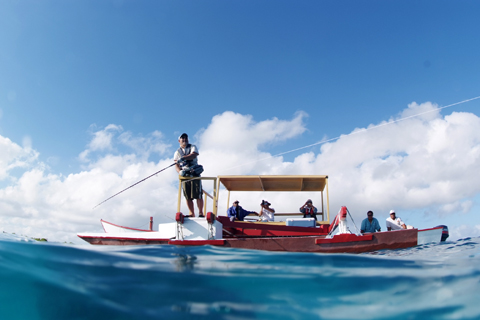 クリスマス島ではフィッシングで使用するボートは原則的に島の漁船をチャーターします。漁船は27ft+40ph船外機のアウトリガー船で、アングラー4名程度が同時に釣りをすることができます。馬力は大きくないですが12〜3ノットで進みます。キャステキングの場合はガイドの知るポイントや鳥山を追ってボートを走らせます。またジギングの場合にはポイントへつけるとエンジンを停止してそこから流されてゆき、離れたらまた元の位置に戻すことを繰り返します。船にはランディングネットやギャフはなく、また船はスペース的にも余裕がないので、魚のランディングはガイド主導にし、怪我をしないように十分に気をつけて行うことが必要です。